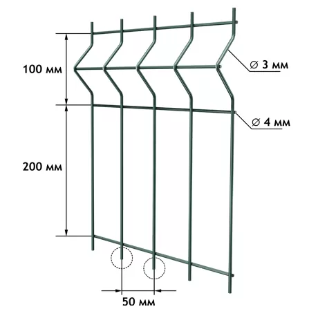 Геометрические параметры 3D-панелей также стандартизированы и могут варьироваться в зависимости от производителя и выбранной серии. Ширина стандартных секций обычно составляет 2,5 м или 3,0 м, что позволяет легко монтировать заборы большой протяженности. Высота панелей имеет очень широкий диапазон, начиная от минимальных 0,63 м и заканчивая высокими секциями до 3,33 м и даже 6 м. Число ребер жесткости напрямую зависит от высоты забора: чем он выше, тем больше таких ребер требуется для обеспечения необходимой жесткости и устойчивости к ветровым нагрузкам. Например, для низких панелей (0,63–1,43 м) может быть достаточно 2 ребер, тогда как для высоких секций (2,03+2,03 м) их число достигает 8. Размер ячейки, как правило, прямоугольный, наиболее распространенным вариантом является 50×200 мм или 55×200 мм, хотя встречаются и другие размеры, такие как 200×55 мм. Опорные столбы, к которым крепятся панели, изготавливаются из профильной трубы прямоугольного или круглого сечения, например, 60×60 мм или 80×80 мм, с толщиной стенки от 1,2 мм до 3,0 мм. Весь комплект для монтажа, помимо самих панелей и столбов, включает антивандальные крепежные элементы (П-, Г-, У-образные скобы), заглушки для торцов столбов и горизонтальные укрепляющие прутья.